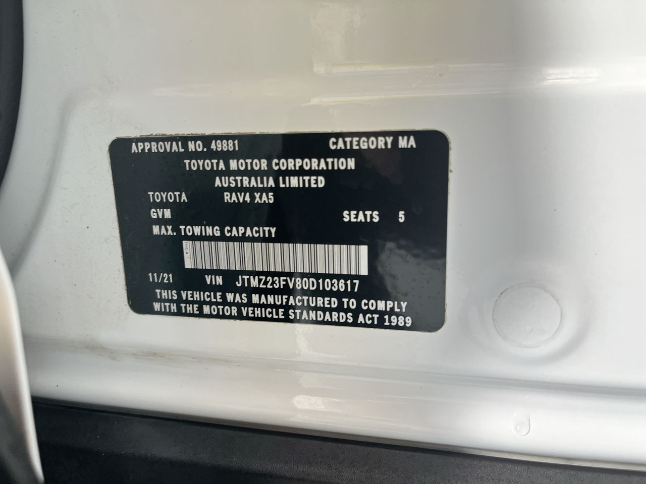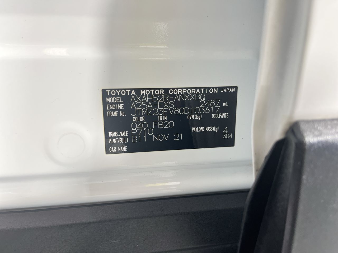 (SN:JTMZ23FV80D103617) (131460-1741)