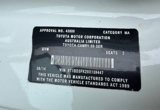 • VIN: 6T1BD3FK20X139447
