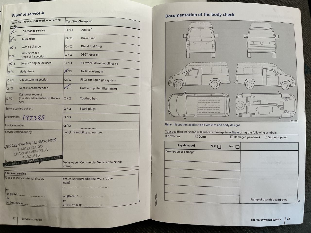 • Dents or marks on body consistent with age and kilometres.