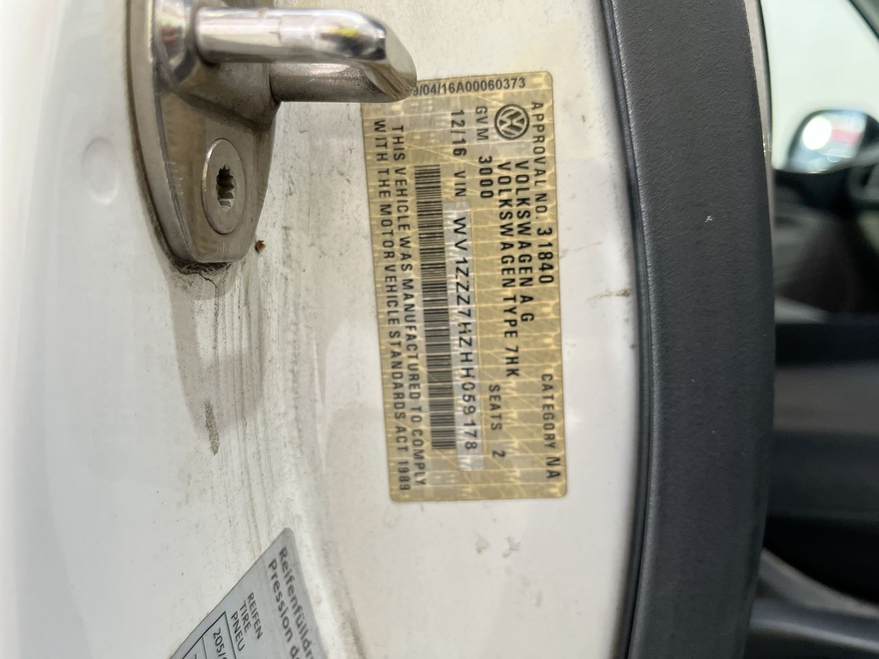 • VIN: WV1ZZZ7HZHH059178