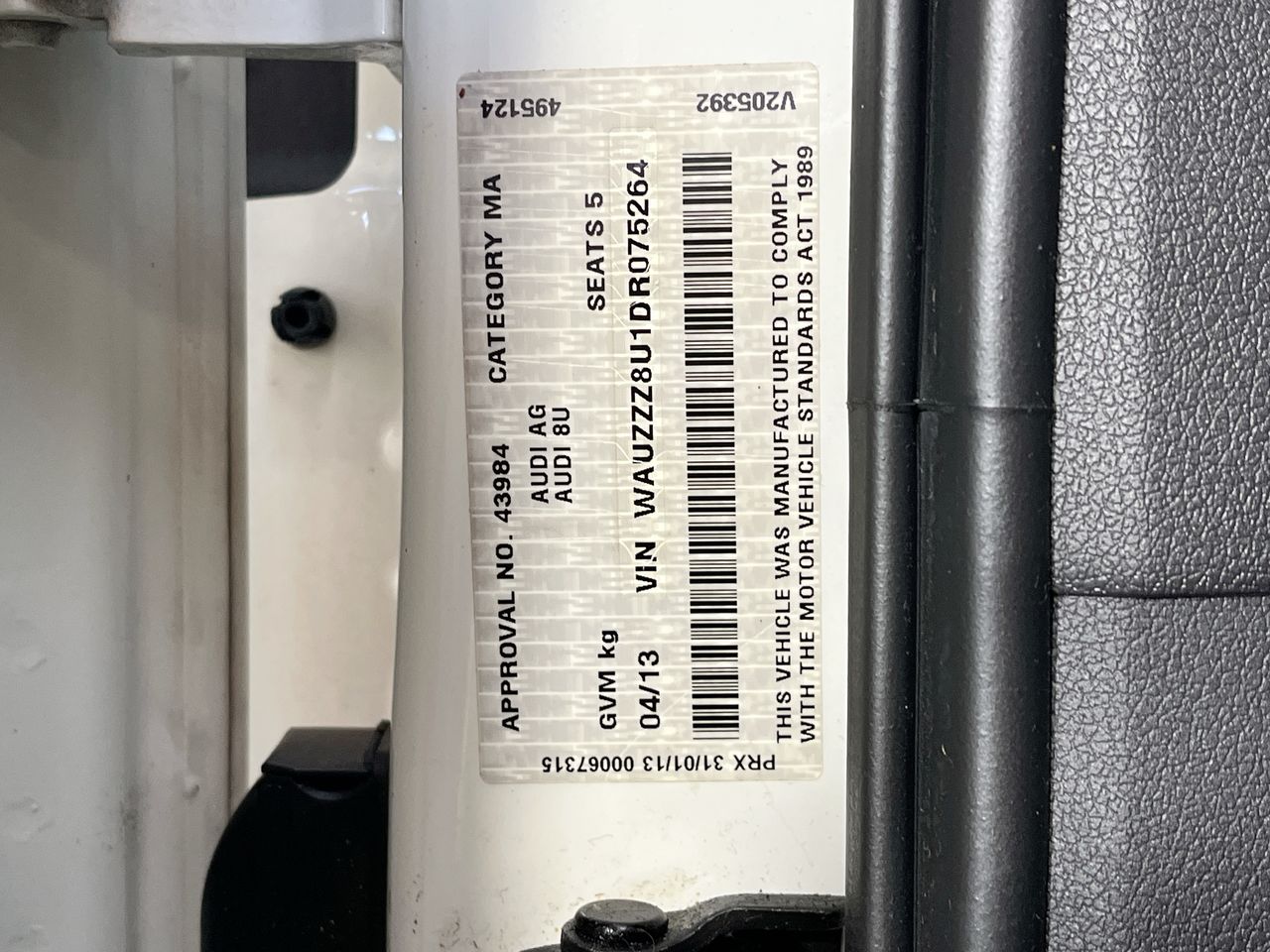 • VIN: WAUZZZ8U1DR075264