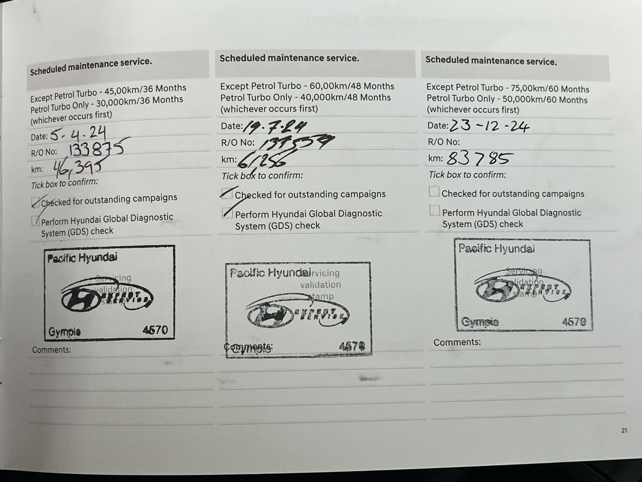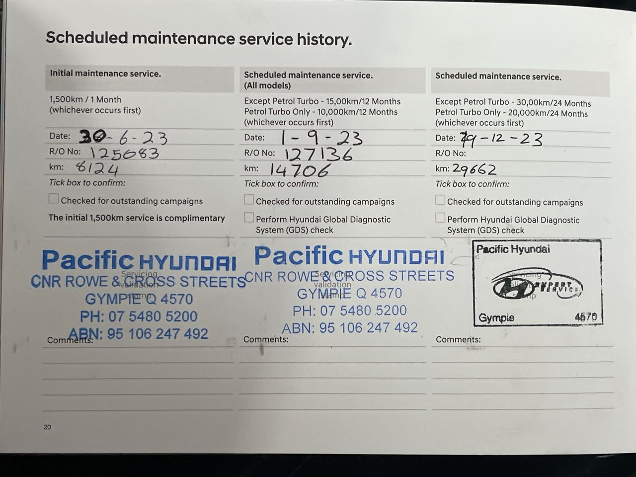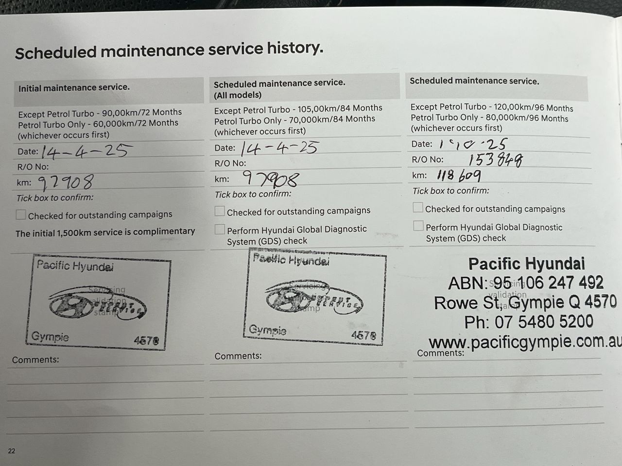 • Dents or marks on body consistent with age and kilometres.