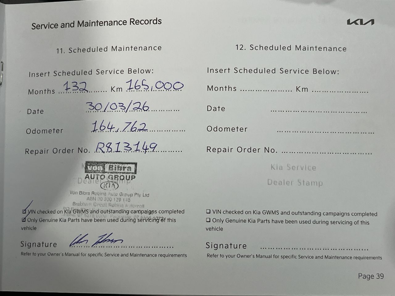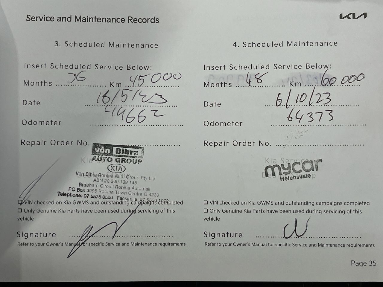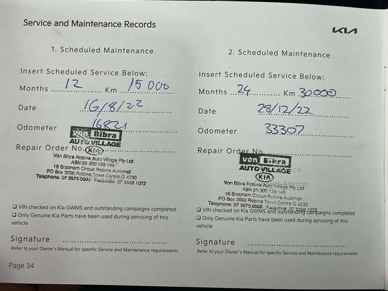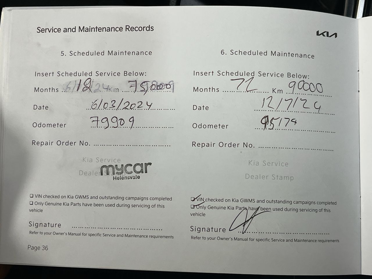 • Dents or marks on body consistent with age and kilometres.