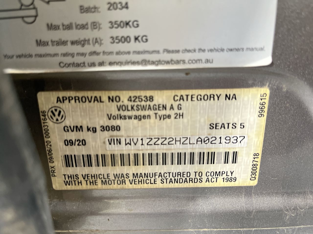 • VIN: WV1ZZZ2HZLA021937