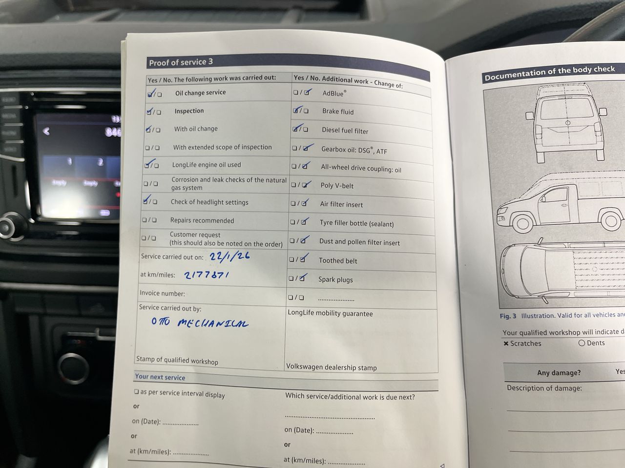 • Dents or marks on body consistent with age and kilometres.
