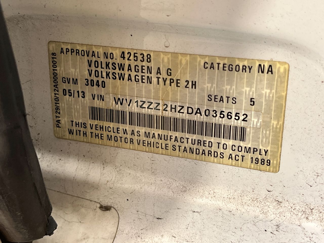 (SN:WV1ZZZ2HZDA035652) (132718-180)