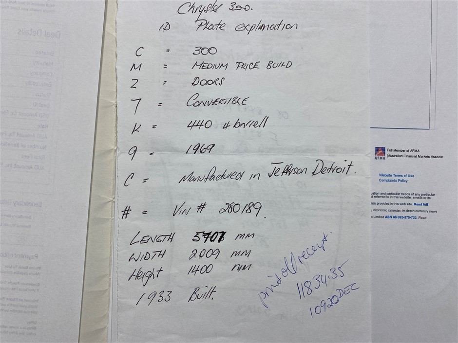 | Part of Sale | 1969 Chrysler 300 Automatic V8 Big Block Convertible | ||||