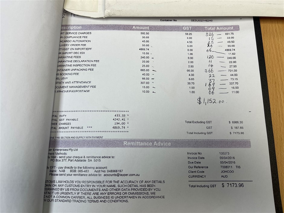 Any payment enquiries, please email accountsreceivable@grays.com.au