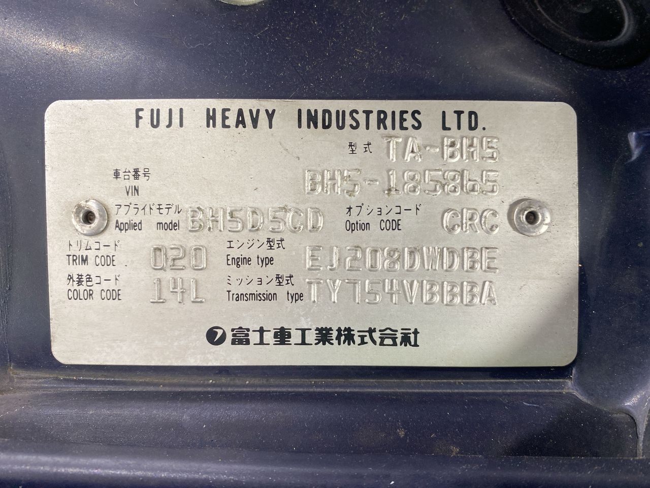 • Engine No: EJ20B313742
