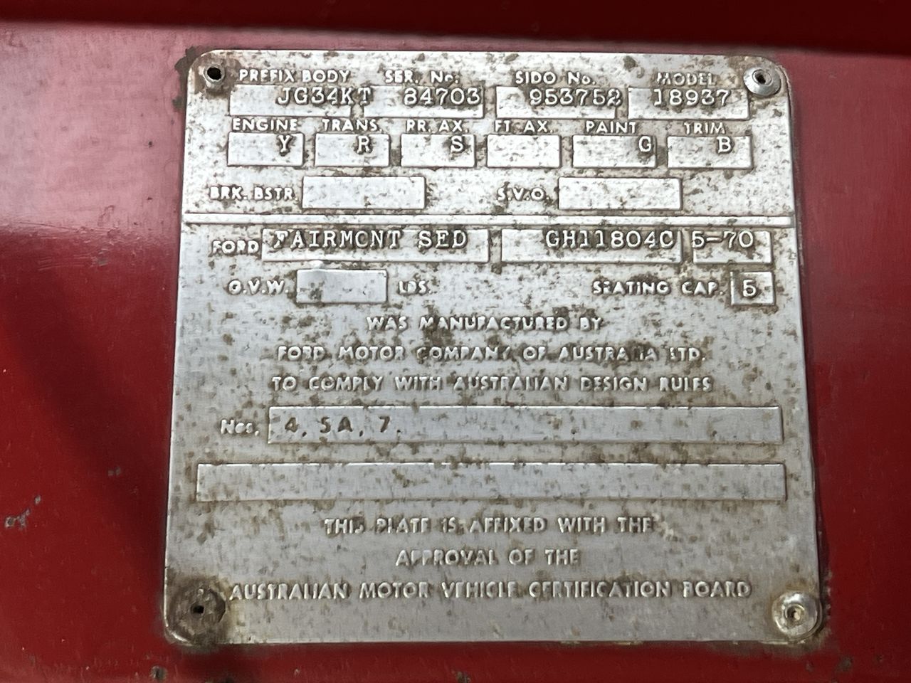 1970 XW Fairmont, Factory 302 V8, Candy Apple Red Manual (Turbo)