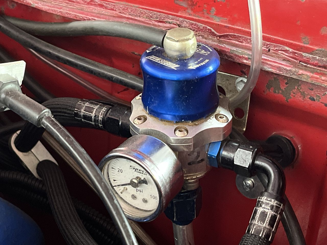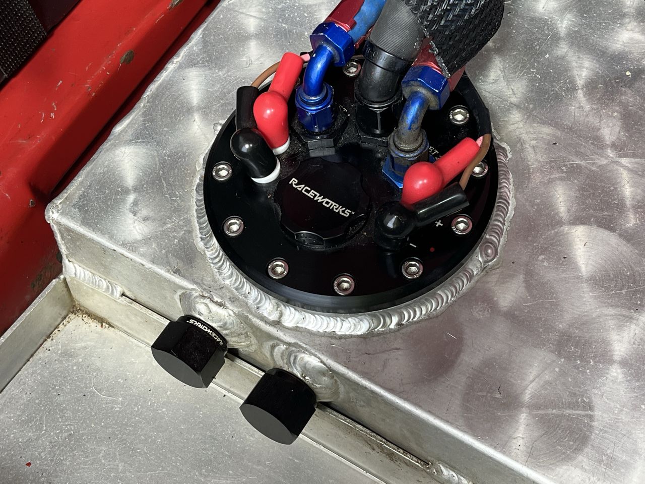 Walbro intank fuel pumps, custom made alloy fuel tank retaining factory mounts.