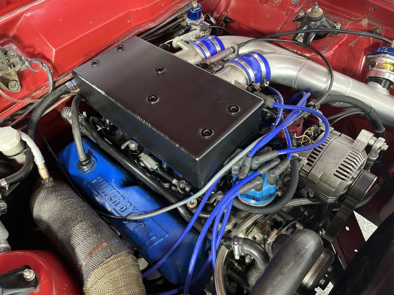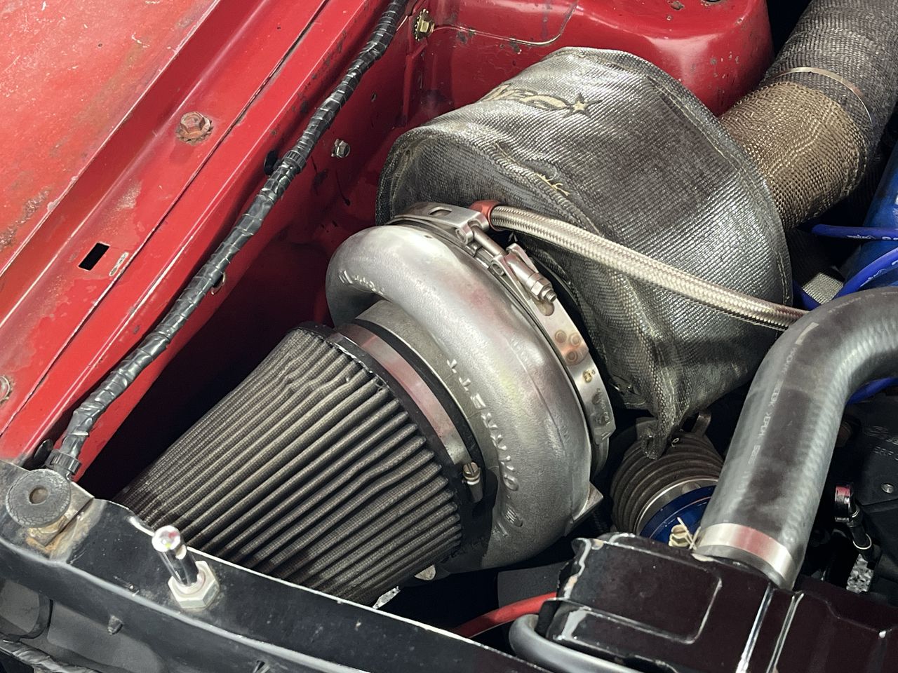 GT42 turbo, custom made steam pipe manifolds.