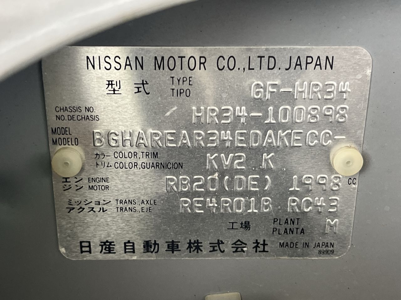 • VIN: HR34100898