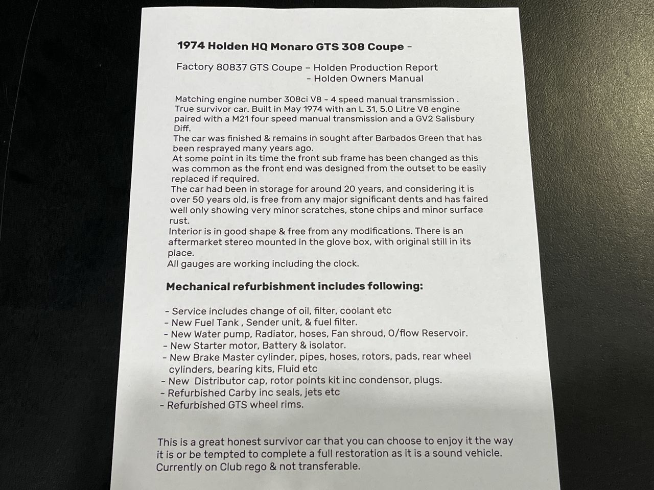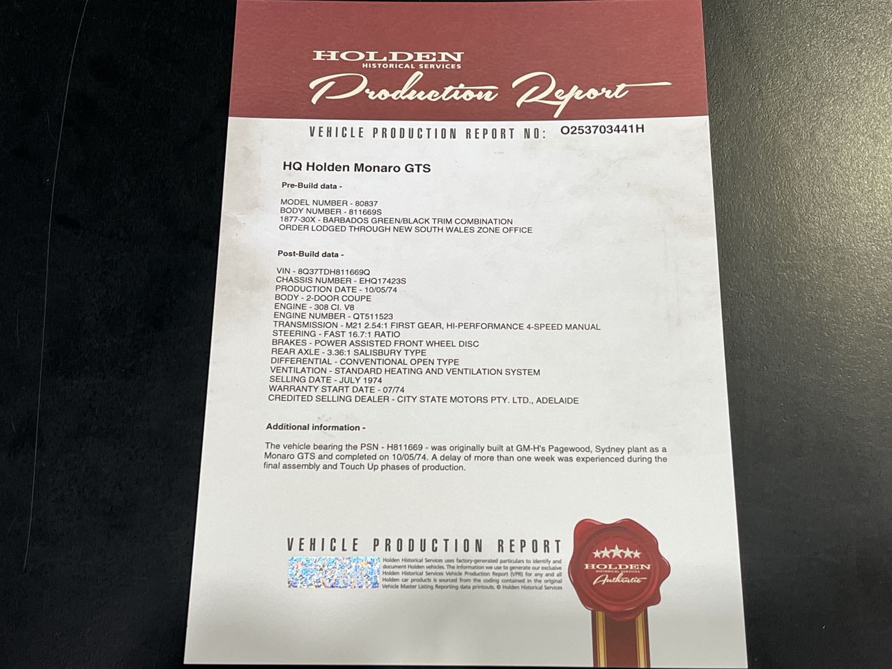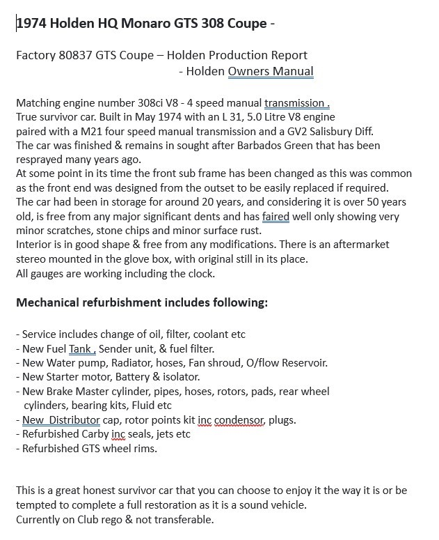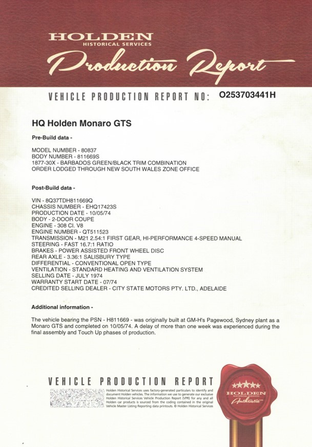 | Part of Sale | 1974 Holden HQ GTS Manual Coupe | ||||
