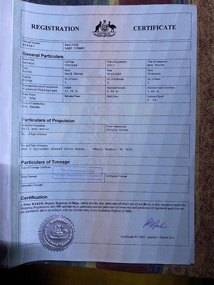 Item condition is `Used`, please refer to Product Condition tab for definition. Sale is on As is Where is basis. No Statutory Warranty/Cooling off periods apply. Sale description is a guide only as vessel may have unsighted damage/issues. Full inspection is recommended.