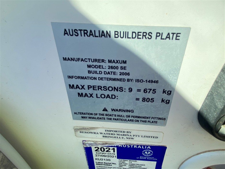 Part of Sale 2006 Maxum 2600SE