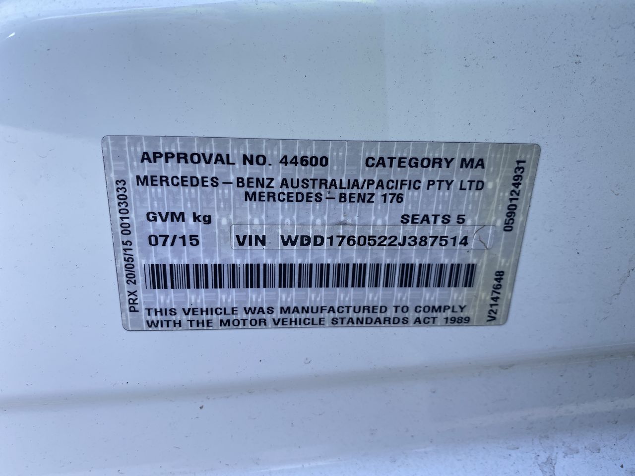 (SN:WDD1760522J387514)