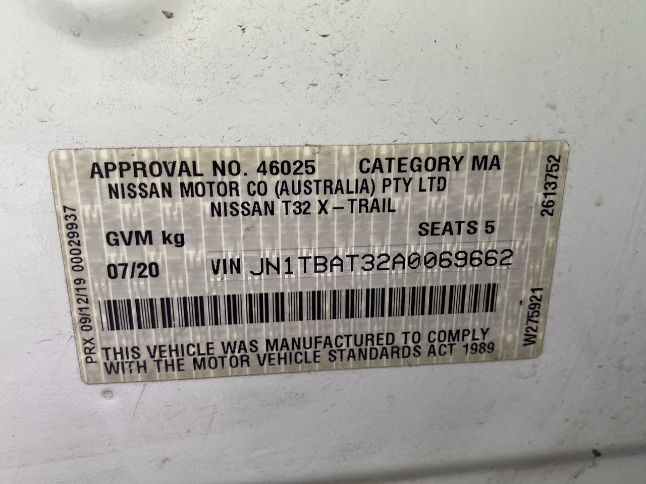 | Part of Sale | 2020 Nissan X-Trail ST FWD T32 CVT Wagon |