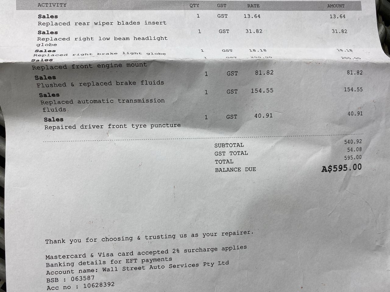 Any payment enquiries, please email accountsreceivable@grays.com.au