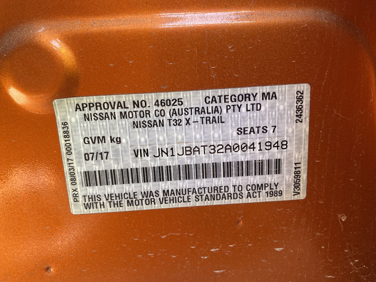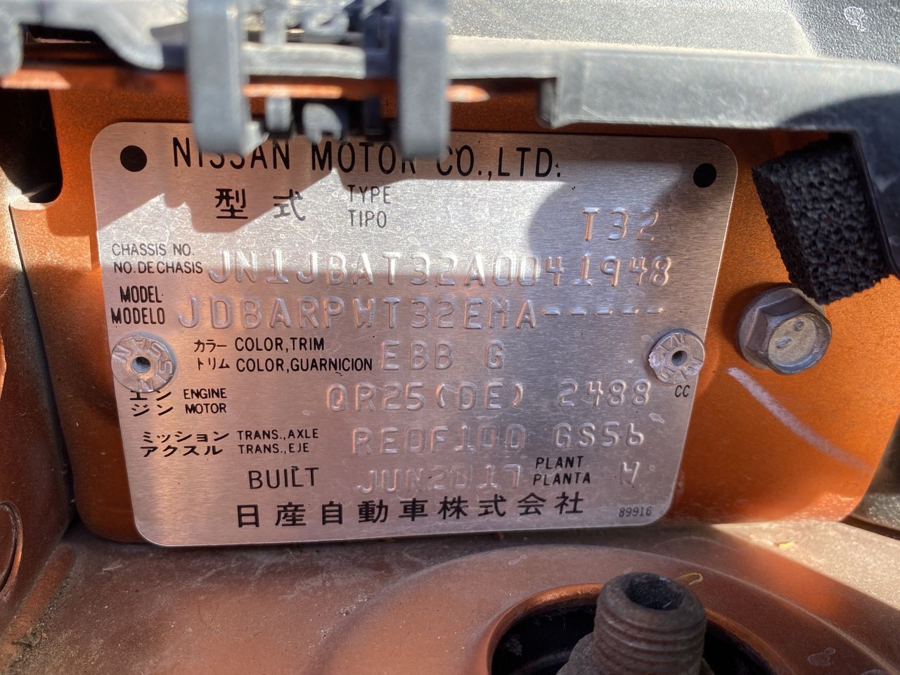 • Engine No: QR25006763M