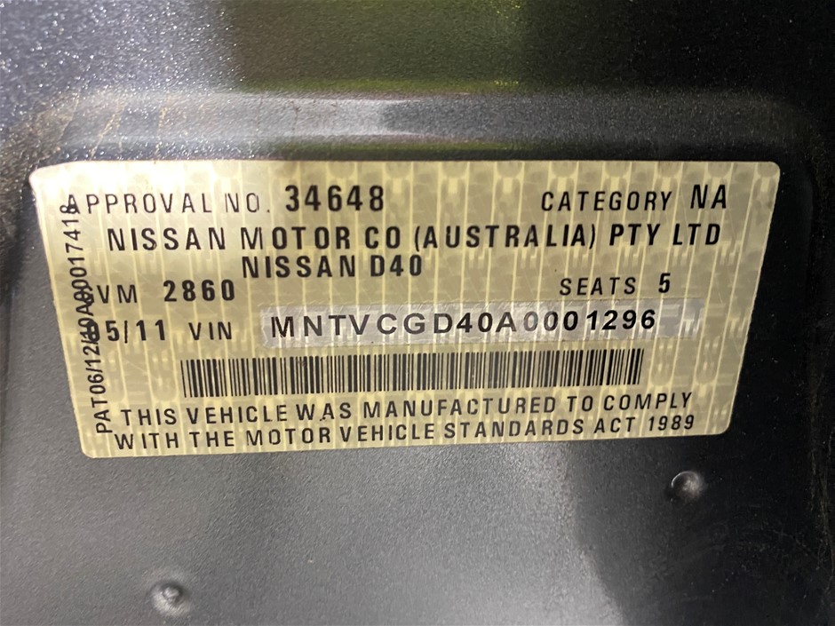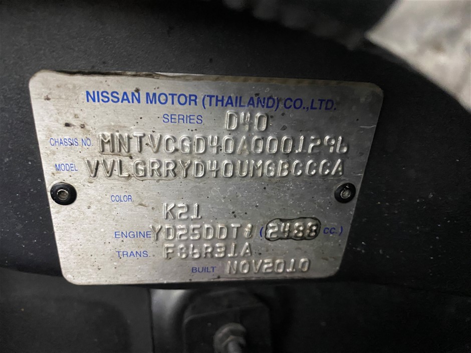 | Part of Sale | 2010 Nissan Navara RX 4X2 DOUBLE CAB D40 T/D Manual Dual Cab | ||||||||||||||