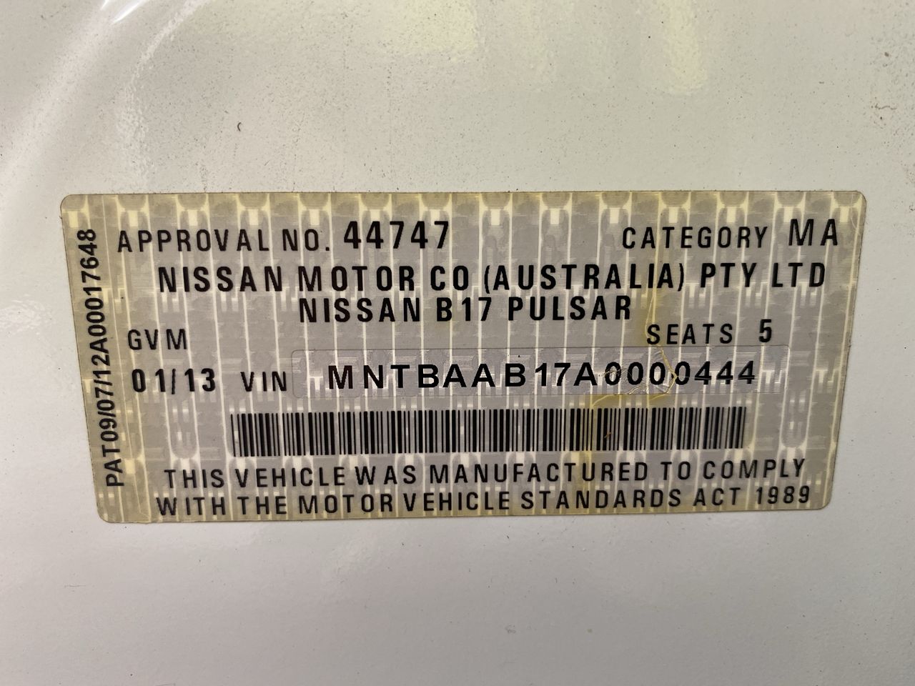 | Part of Sale | 2012 Nissan Pulsar ST B17 CVT Sedan | ||||||||||||||