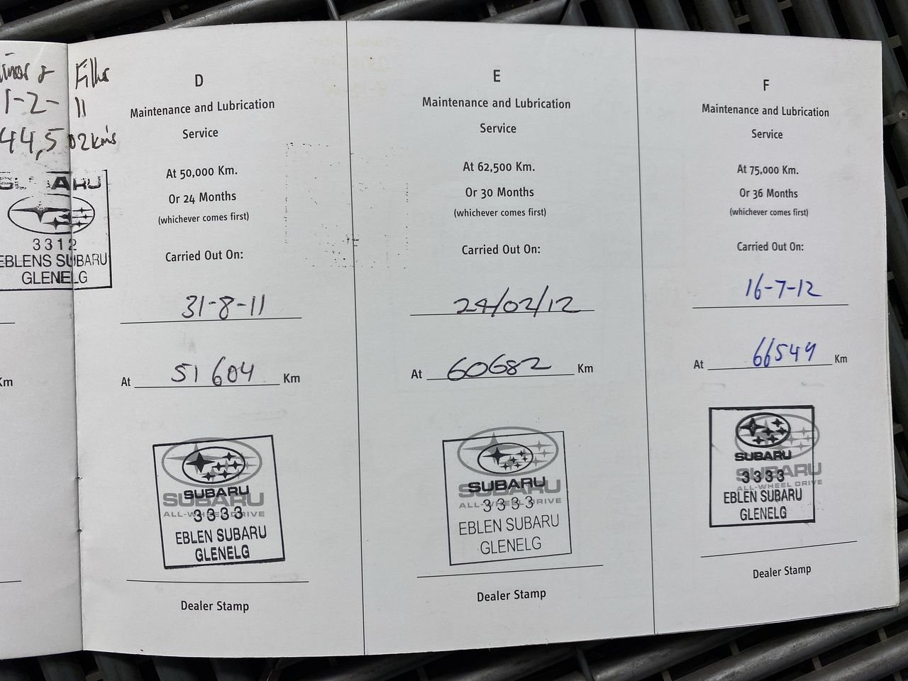 • Engine number: EJ25D264928