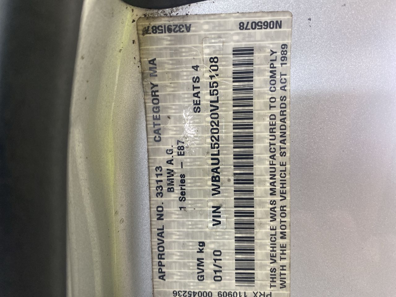 • VIN: WBAUL52020VL55108