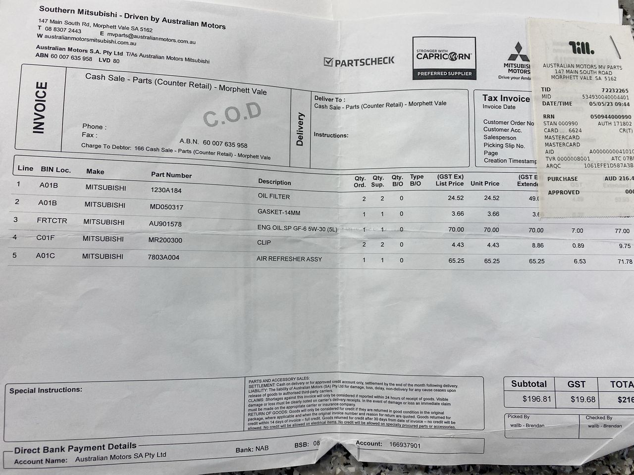 For SA registration, once your invoice is paid, you’ll need to visit a motor registry with: