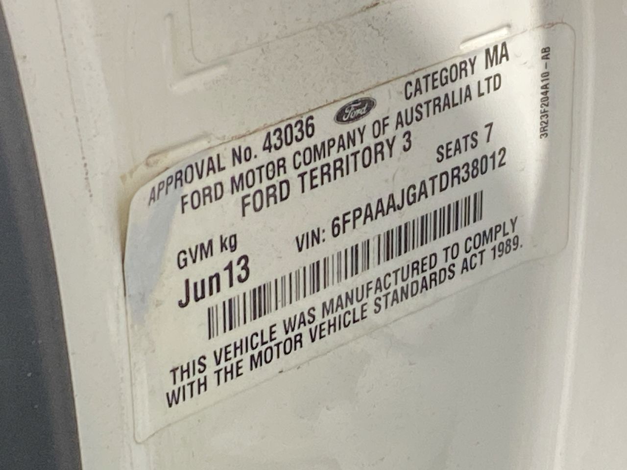 | Part of Sale | 2013 Ford Territory TX SZ | ||||||||||||||