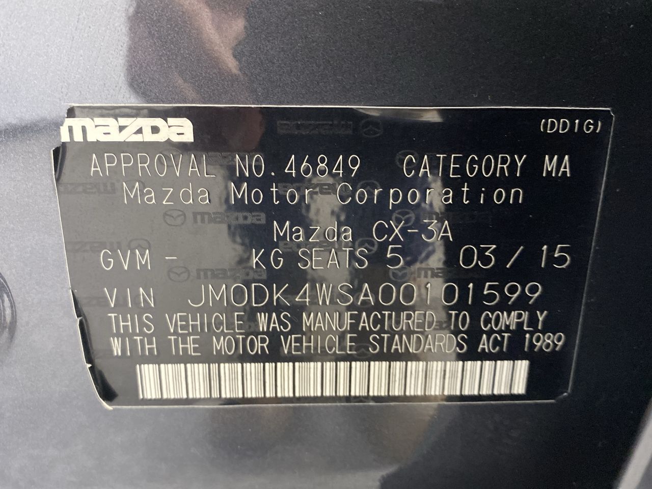 (SN:JM0DK4WSA00101599) (868806-84)