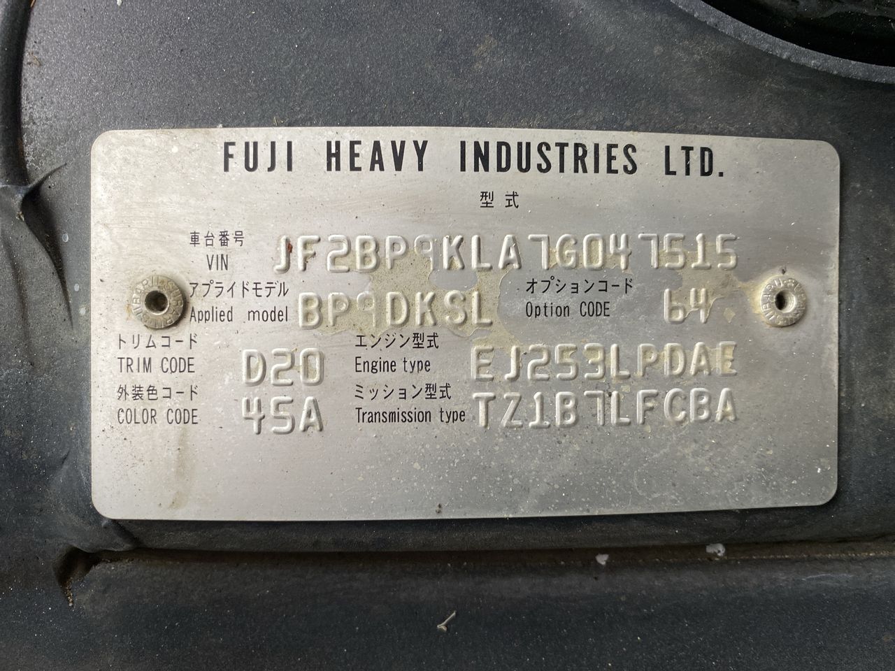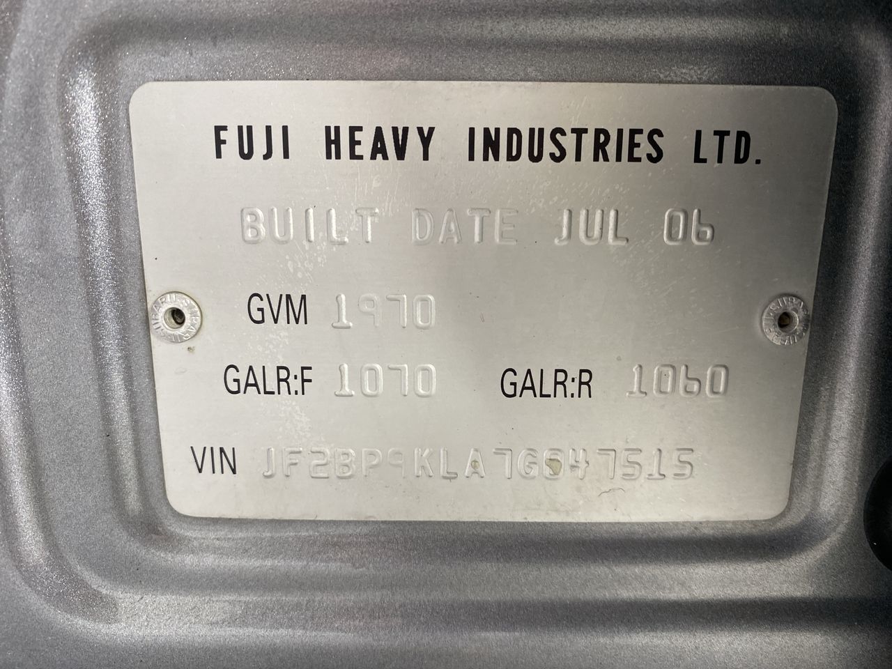 (SN:JF2BP9KLA7G047515) (864924-158)