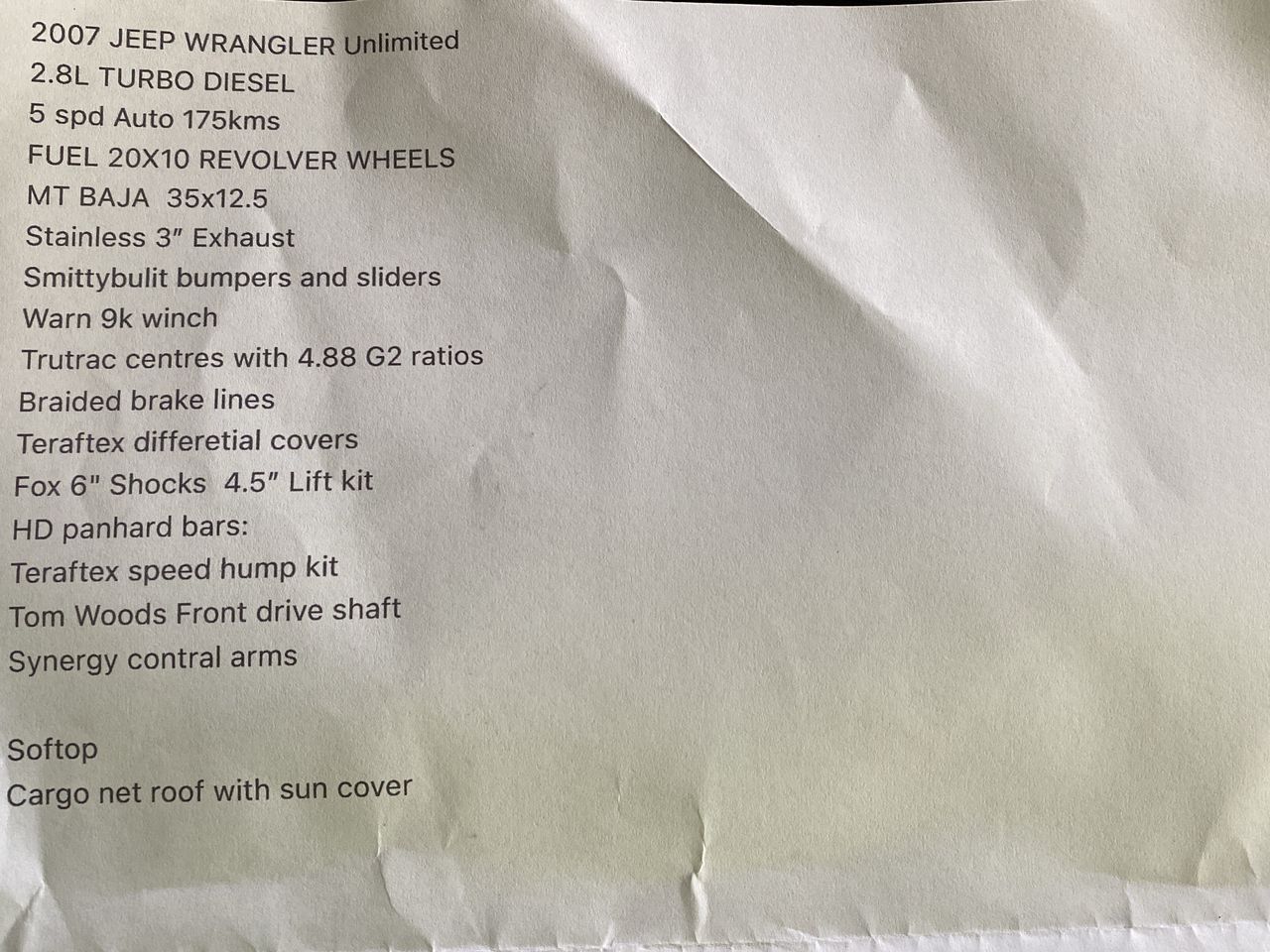 | Part of Sale | 2007 Jeep Wrangler Unlimited Sport | ||||||||||||||