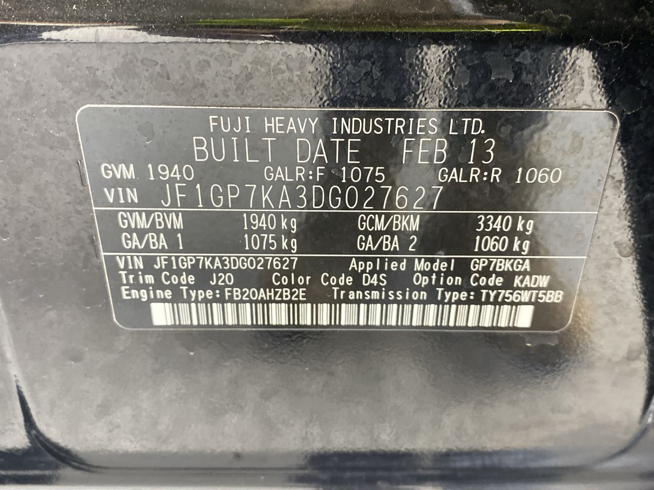 (SN:JF1GP7KA3DG027627) (875219-684)