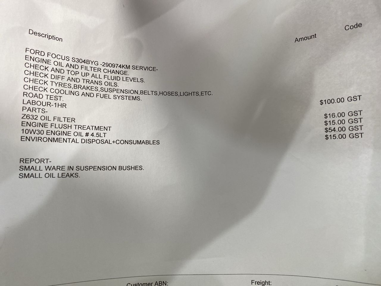 • Indicated Odometer Reading: 292536