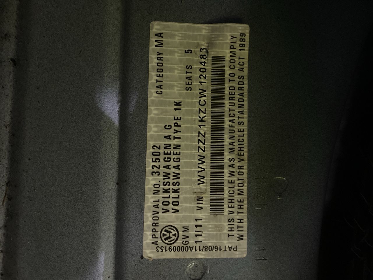 • VIN: WVWZZZ1KZCW120483