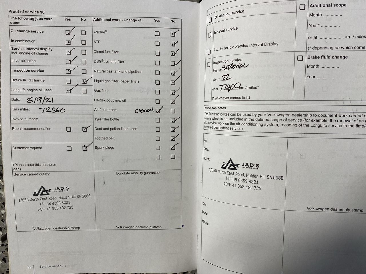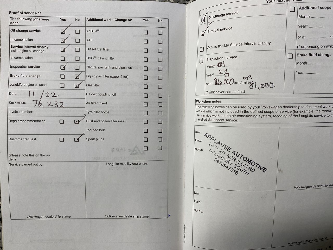 • Service History: Yes