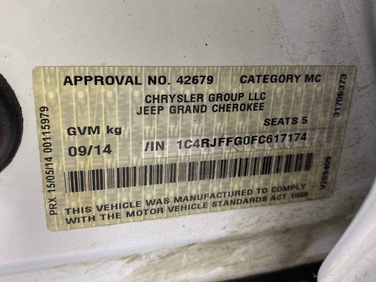 (SN:1C4RJFFG0FC617174) (863472-105)