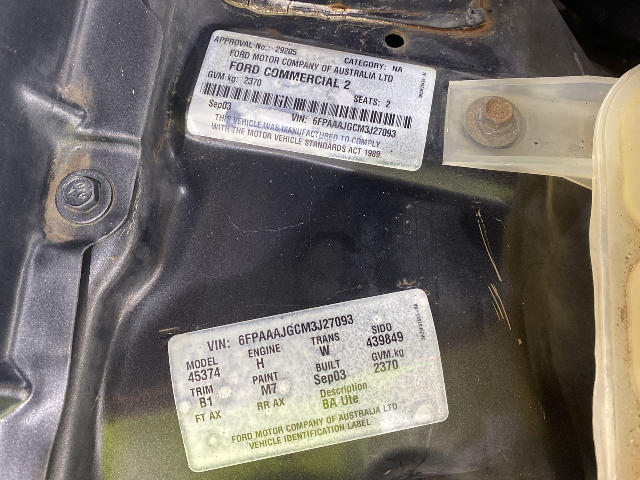 | Part of Sale | 2003 Ford Falcon XLS BA Automatic Ute | ||||||||||||||