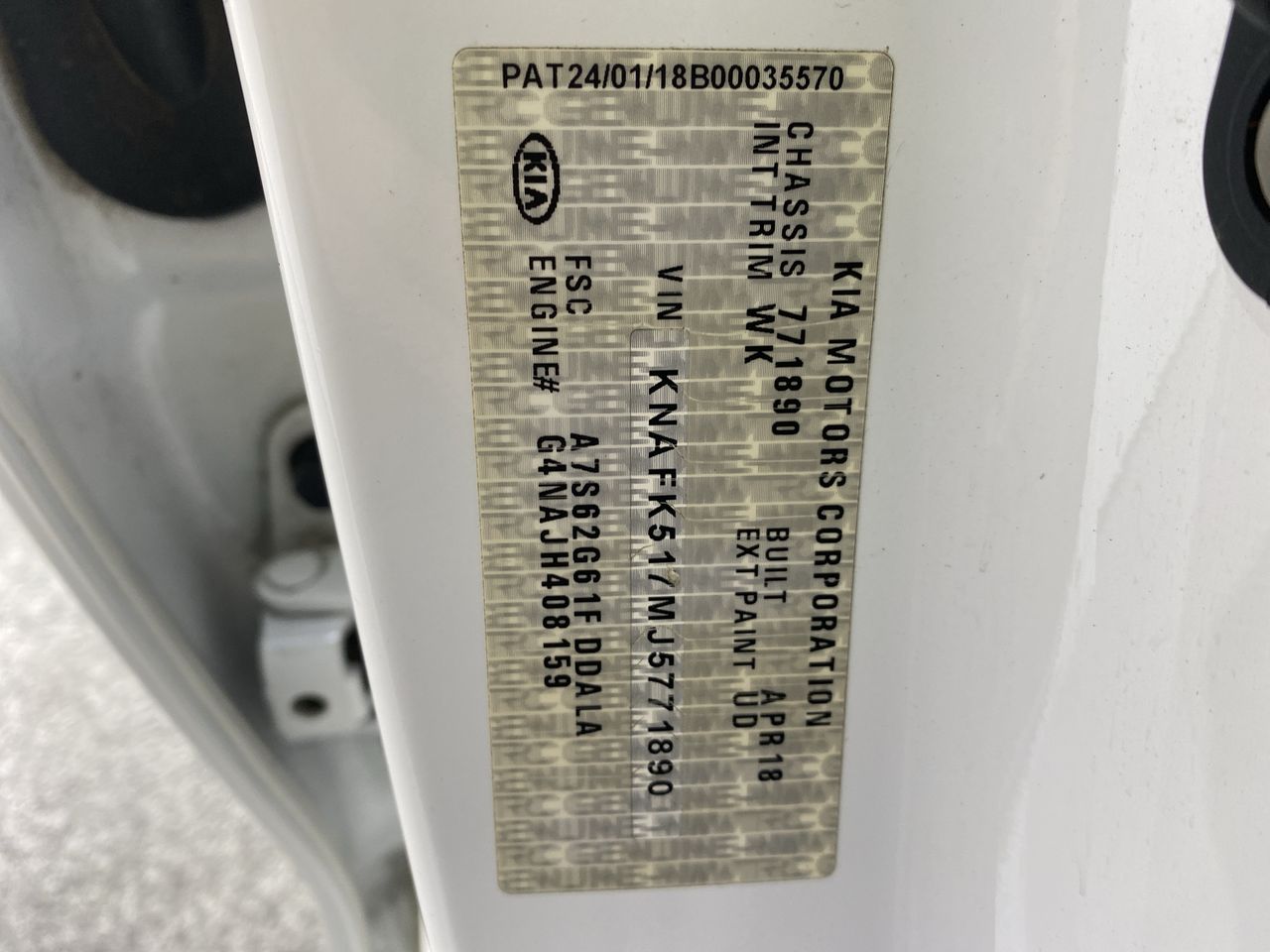 • VIN: KNAFK517MJ5771890