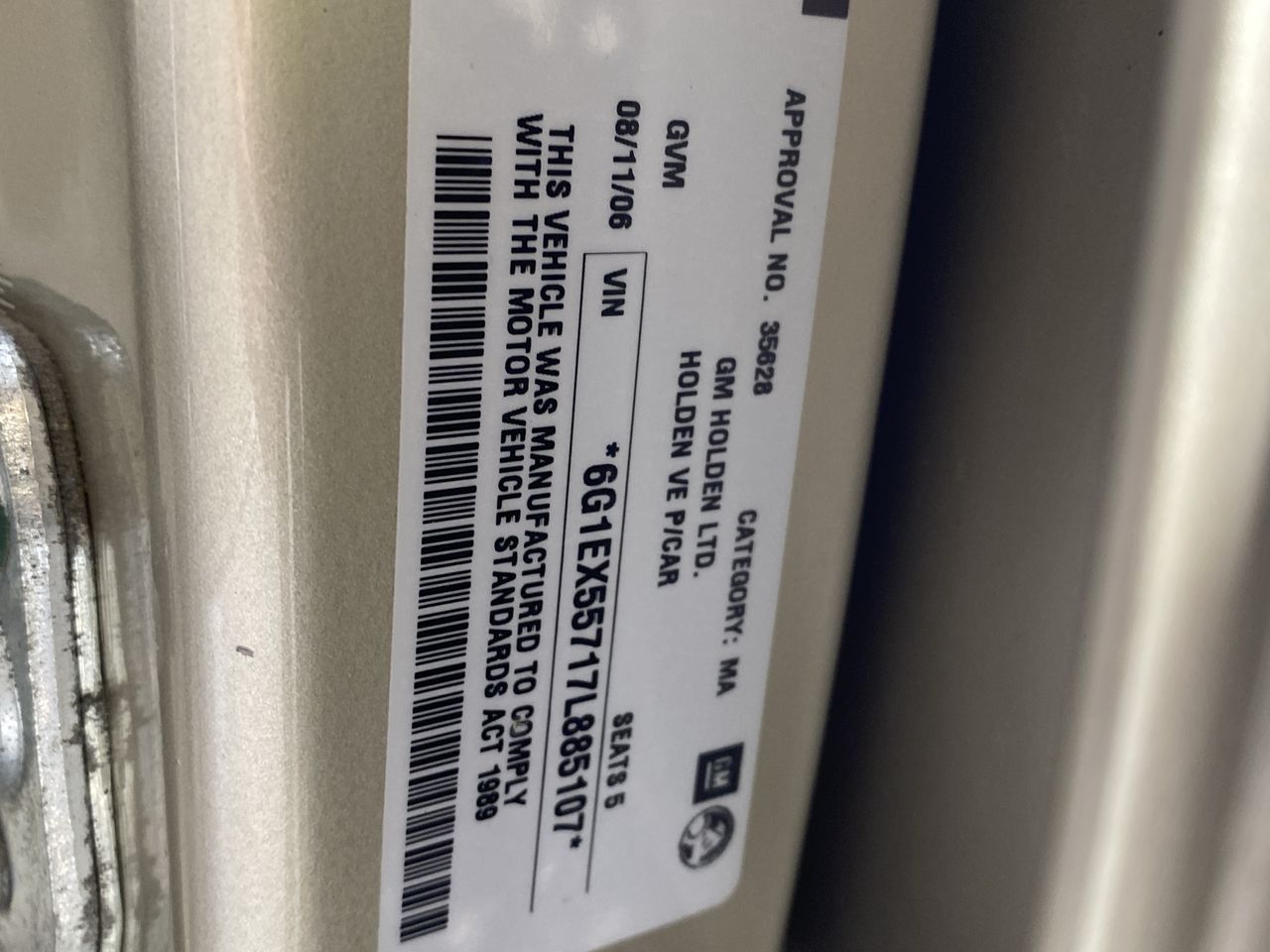 • VIN: 6G1EX55717L885107