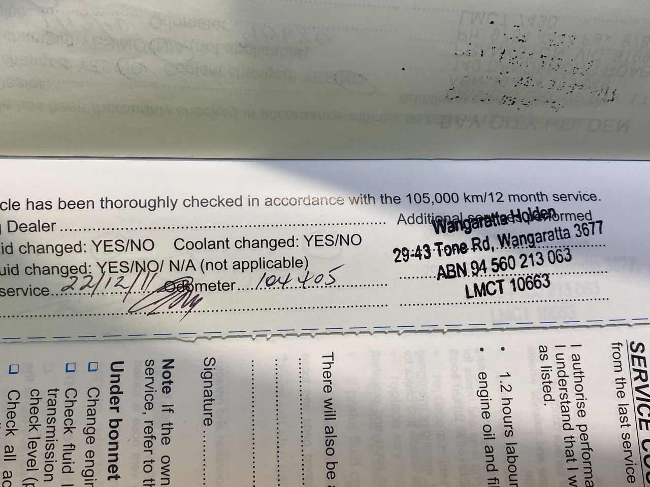 • Service History: Yes