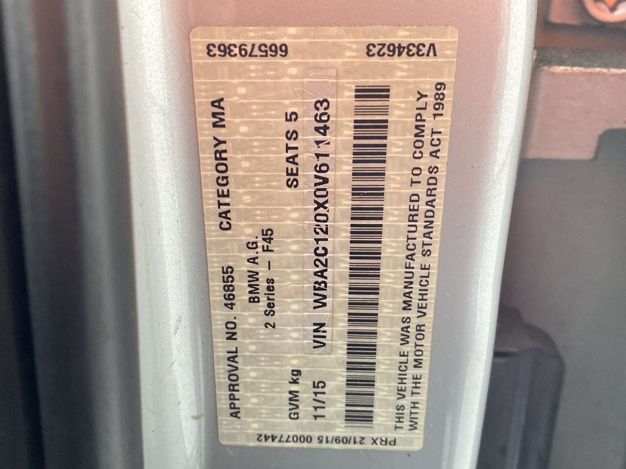 Part of Sale 2015 BMW 2 SERIES ACTIVE TOUR 218d F45