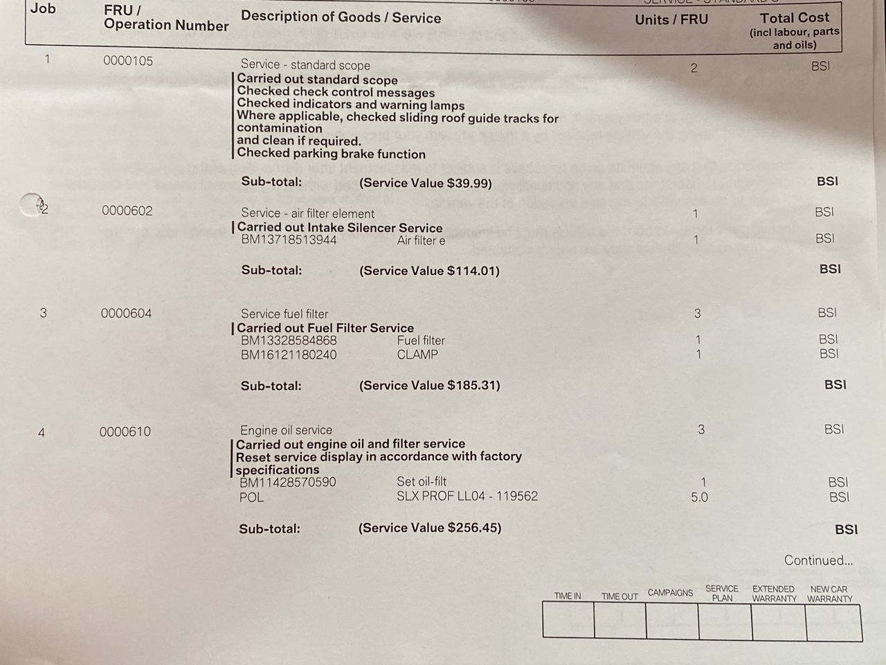 • Service History: No