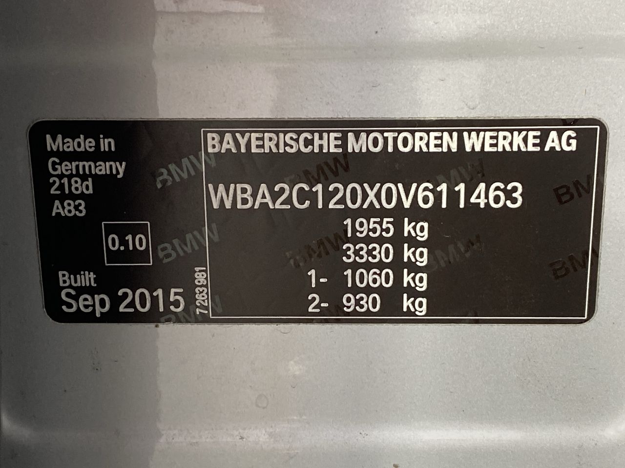 • VIN: WBA2C120X0V611463