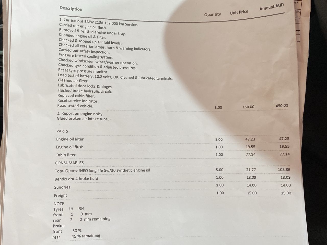 • Indicated Odometer Reading: 152433