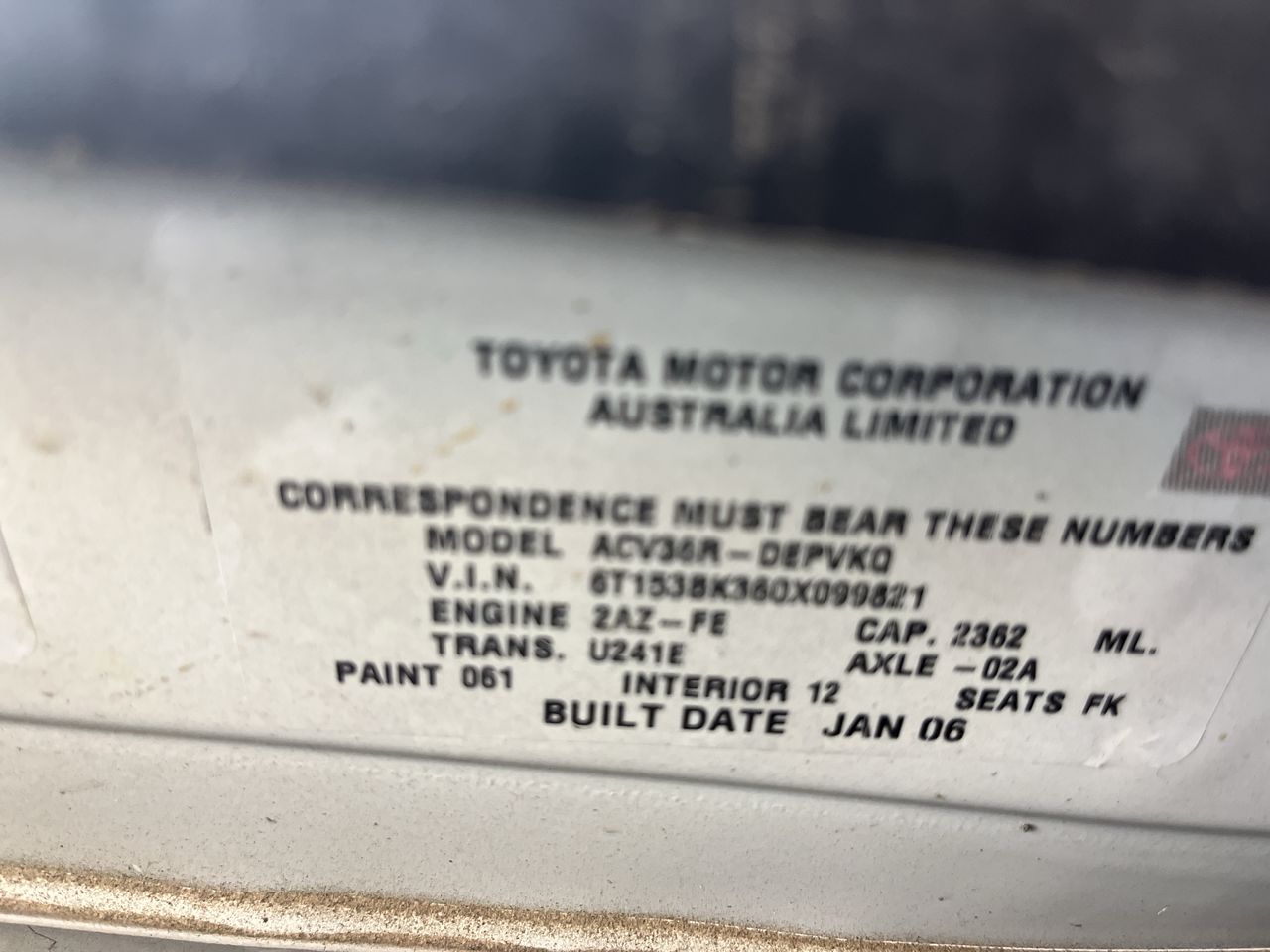 | Part of Sale | 2006 Toyota Camry Sportivo ACV36R Automatic Sedan | ||||||||||||||