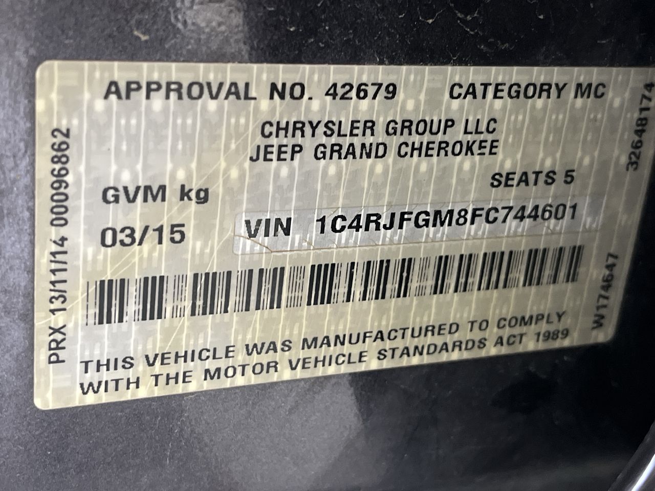 (SN:1C4RJFGM8FC744601) (862045-190)