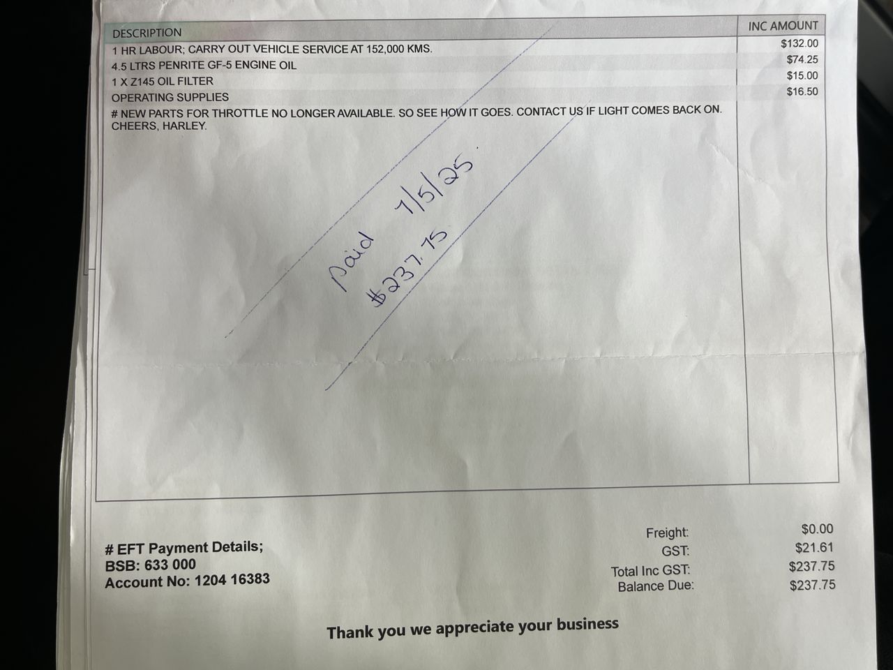 Any payment enquiries, please email accountsreceivable@grays.com.au