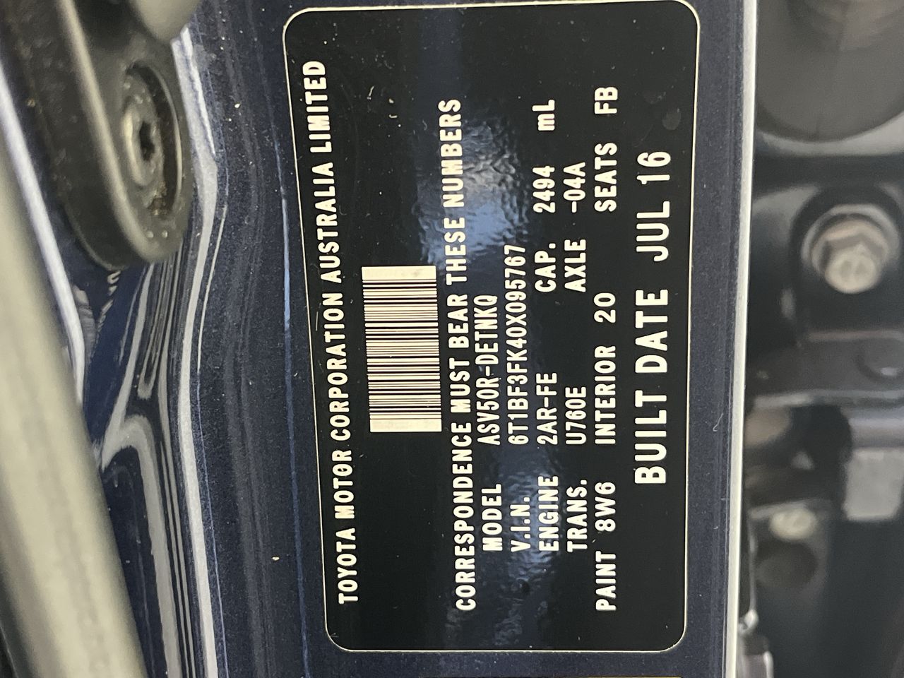 • VIN: 6T1BF3FK40X095767